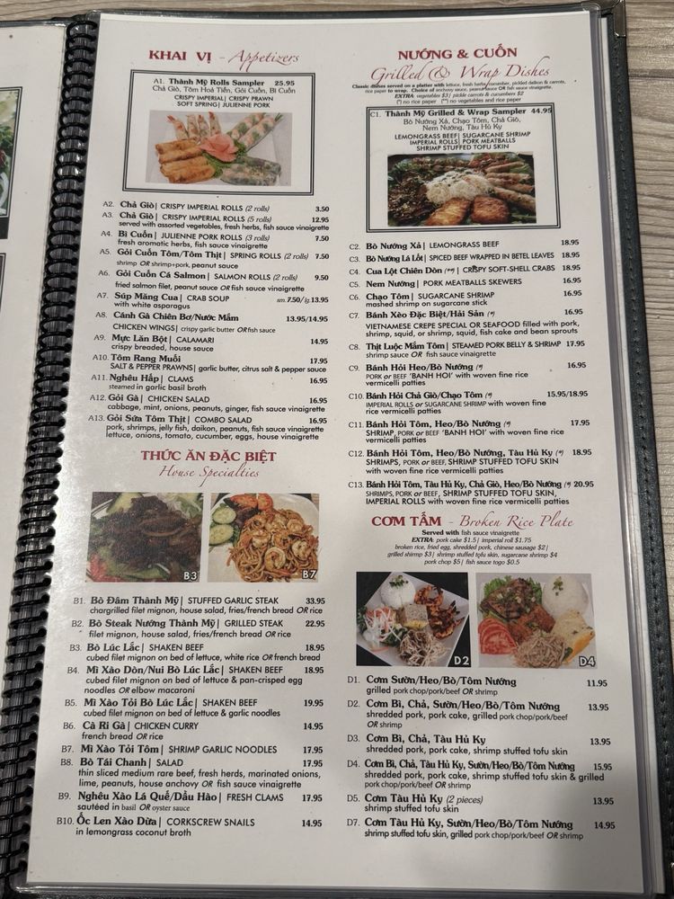 Welcome to Thanh My Restaurant, a beloved Vietnamese eatery located in Westminster, CA. With a rich menu that speaks to both tradition and innovation, it offers a wide array of delectable dishes suitable for everyone, including numerous vegan and vegetarian options. Notable highlights include the B1. Bo Dam Thanh My, a sumptuous stuffed garlic steak, and the aromatic Oc Len Xao Dua, featuring corkscrew snails in a lemongrass coconut broth.